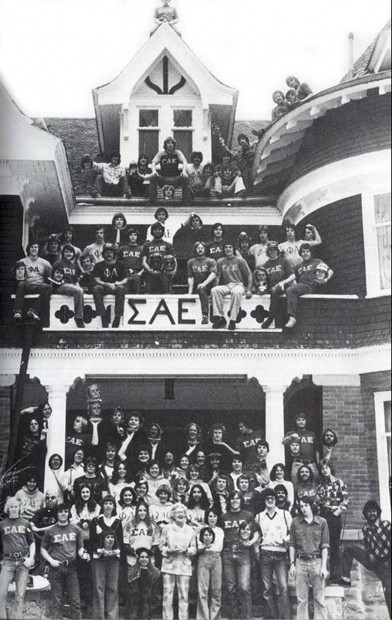 The fine craftsmanship, materials, and design of the T.B. Story Mansion are credited with its remarkably good condition during 80 years of fraternity occupancy from 1923 to 2000. It survived heavy use for cramped sleeping quarters in the Carriage House and the 3rd-floor “ballroom” (elegant under T.B.’s ownership). Credit should be shared between generations of actives who cherished their fine quarters and the presence of a House Mother who promoted decorum. House mothers resided in one of 8 bedrooms (study rooms) on the 2nd floor. Throughout the years, fellow students came to know the terrain on the 1st floor and grounds. The Chapter Room in the basement still flourishes the colors purple and white of SAE. Memories abound among the frat boys who lived in the Story Mansion.