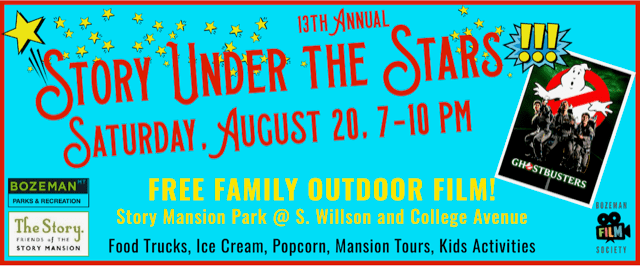 This event is brought to you by the Bozeman Film Society, the Friends of the Story Mansion, and the City of Bozeman Parks & Recreation Department. SEE YOU THERE!!!